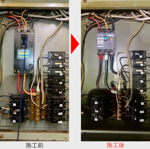 漏電の原因が分電盤にあることから、オーナー様へ状況をご説明し、新しい分電盤への交換工事をご提案しました。